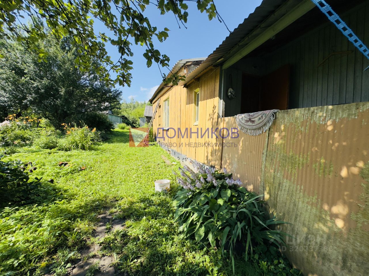 Участок - Площадь земельного участка составляет более 20 соток - Растущие плодоносные деревья (черешня, яблоня, груша) и ягодные кустарники (малина, смородина) - Обустроены две хозяйственные постройки, одна из которых оборудована удобным погребом - Забор из профлиста и частично из сетки рабицы - Есть благоустроенный передний двор с местом для автомобиля (гараж) - Прекрасный водоём непосредственно около дома для отдыха и рыбалки (река Мутёнка)